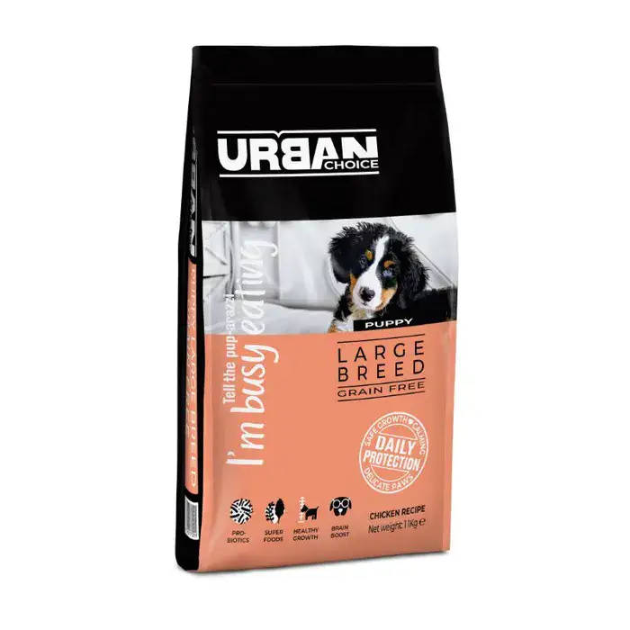 URBAN CHOICE PUPPY LARGE BREED – מזון יבש, מלא, עשיר ומאוזן לגורי כלבים אורבניים מגזע גדול על בסיס עוף. בטבע הם ציידים, אבל כלבי העיר צדים לרוב בין המיטה לספה. למרות זאת, הם עדיין חשופים לנזקי העיר: רעש המוביל לסטרס, זיהומים אשר פוגעים בבריאות ומראה העור והפרווה, משקל עודף… URBAN CHOICE מותאם לאורח החיים האורבני ומבין את הצרכים של חיית המחמד שלך בקצב החיים המסחרר של העיר הגדולה. נוסחת ה- Daily Protection מכילה את שלושת עקרונות היסוד לתזונה אורבנית בריאה עבור הכלב שלכם. • SAFE GROWTH: מכיל חומצת שומן מסוג DHA ו-EPA החיוניות לגדילה והתפתחות תקינה של המח. • CALMING: מכיל רכיבים ייחודיים כגון קמומיל, פסיפלורה, וחיידקים פרו-ביוטיים לשמירה על תחושת הרוגע. • DELICATE PAWS: מסייע בשמירה על כפות הרגליים מפני שחיקה באמצעות שילוב ייחודי של 150 מ"ג/ק"ג אבץ